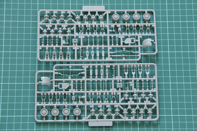 Two sprues on the photo above are absolutely identical and carry the same set of parts. Here modeler can find one-piece wheel rims, separately molded doors and side fenders. A lot of parts from here should be used for suspension assembly.