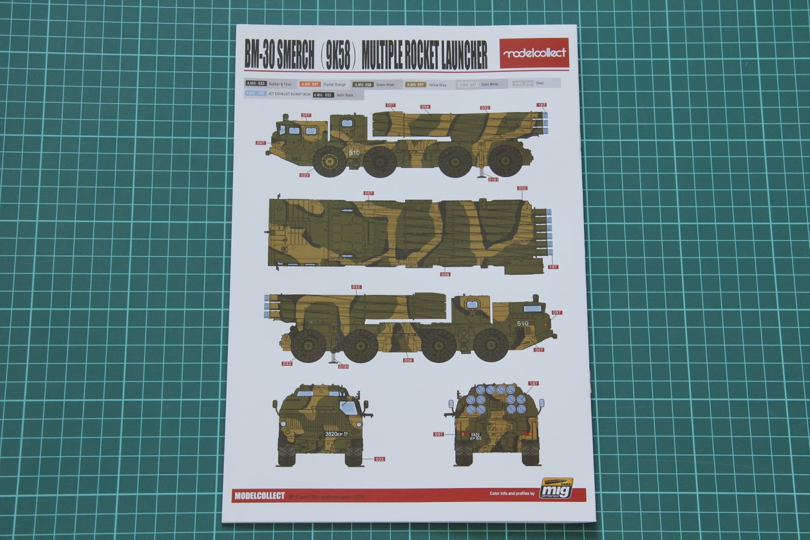 Assembly manual is finished in a new style as you can see on the photo above. Inside you will find short history note, parts map and assembly process with schematic images. Each step accompanied with explaining text strip, so that you would know what exactly you are doing at the given moment. Two last pages are dedicated to marking guides created in cooperation with Ammo MiG. Below you can see photos of the manual.