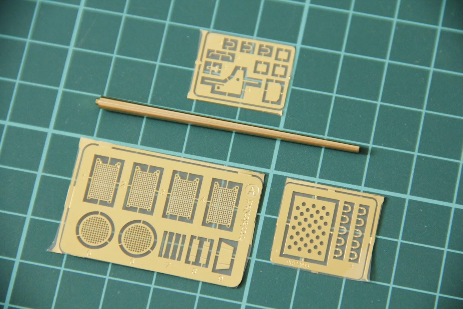 Бонусы включают три (!) рамки травления и металический ствол. Конечно, они дополнят танк, но будьте готовы к работе с небольшими деталями. Разумеется, в комплекте есть лист с декалями, который обычно идёт в немецких танках от Modelcollect.