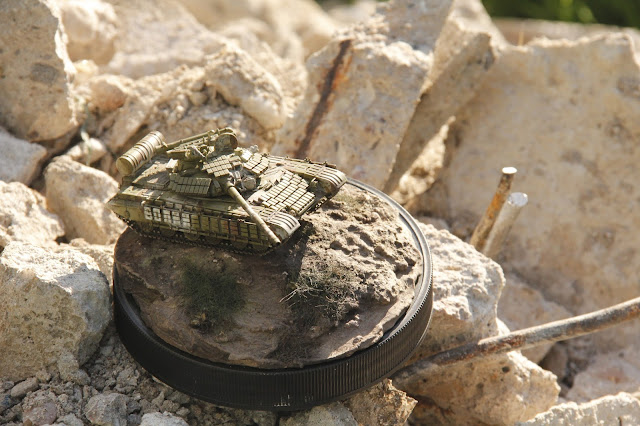 Next step was to create a stand for this tiny tank. I decided to sculpt it out of clay. Here I have to thank Marek Mika for helping me achieve more realistic result. You can see on the photos above and below the final appearance of the tank.