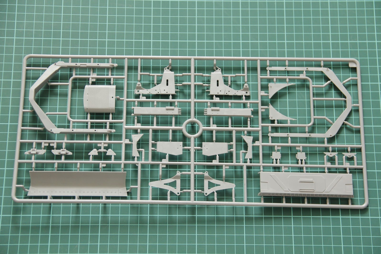 Next there are more external parts like dozer panel, which is designed as one-piece. Of course, on the assembled model this piece can be a focal point for the viewer's attention, and I would recommend to spend some time weathering it.