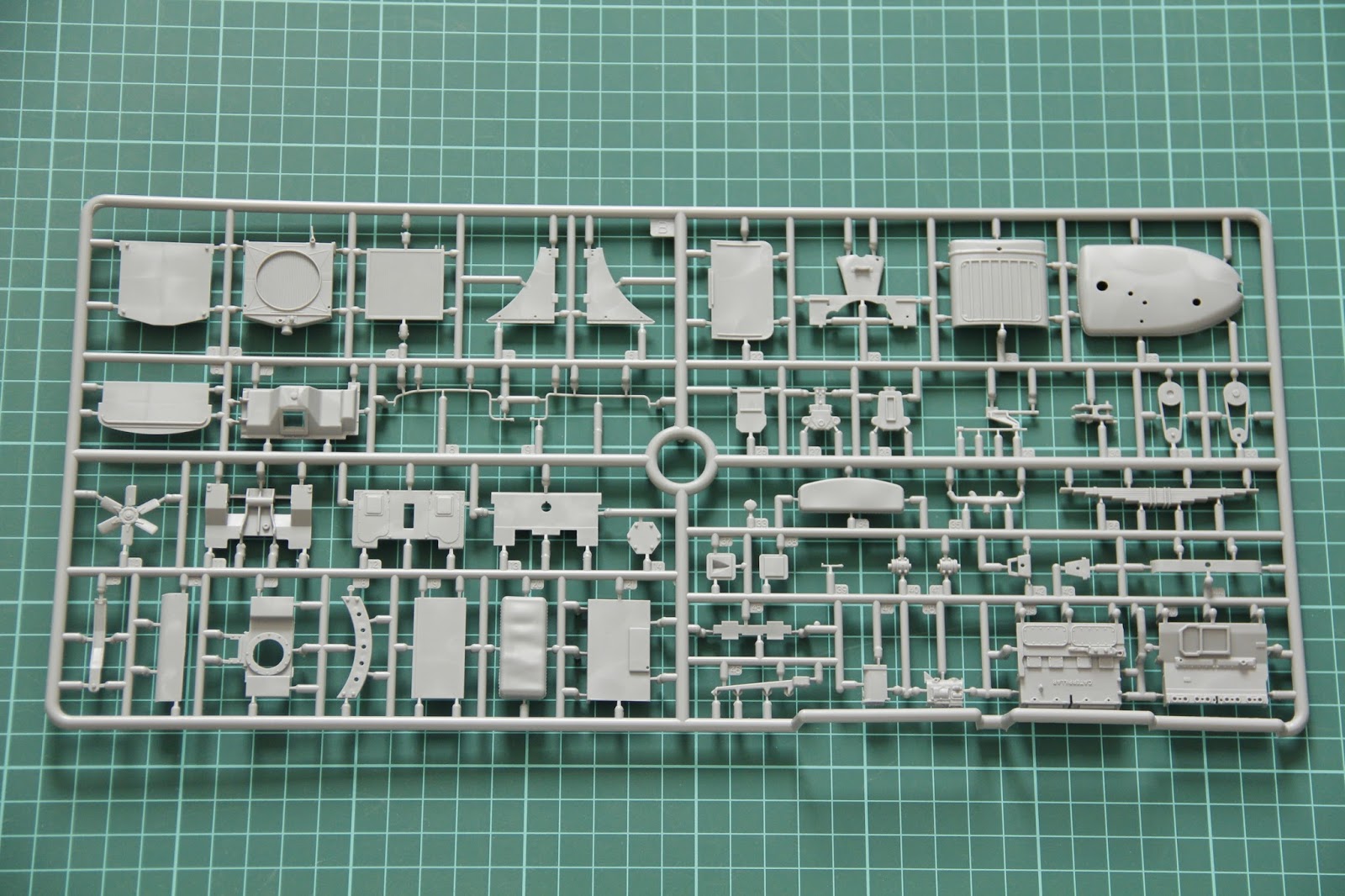 Armor panels for the cab are placed on the separate sprue. Doors are molded separately, so you might even glue them in open position.