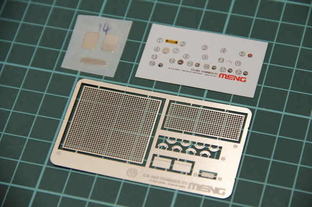 В наборе также идут специальные хромированные декали для зеркал, а также обычные для шкал приборов и мелких знаков. Крайний отпечатан в Cartograf. Планка травления неокрашена и содержит немного деталей, что типично для Meng.