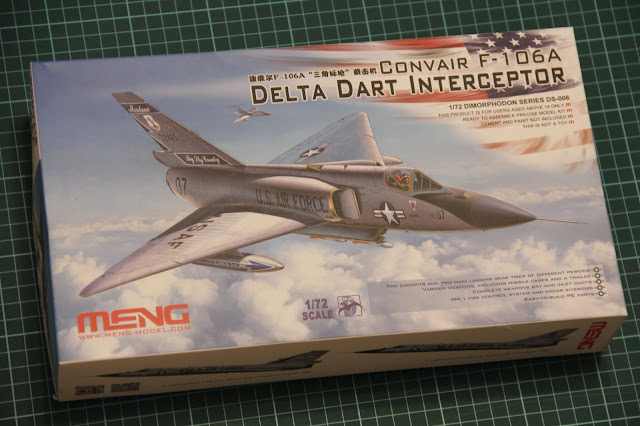 Meng довольно знаменит своими наборами военной техники, но не стоит забывать, что также бывают и самолёты от той же компании. Обычно они отлиты в 72-ом масштабе, несколько выпускаются в больших размерностях. Сегодня у нас есть шанс рассмотреть новинку - F-106A, который отлит в масштабе 1/72. Как вы можете видеть на основном фото, пластик упакован в коробку с красивым боксартом на передней стороне. Внутри моделист найдёт литники вместе с планкой травления, декалями и инструкцией по сборке. Давайте рассмотрим всё это поближе.
