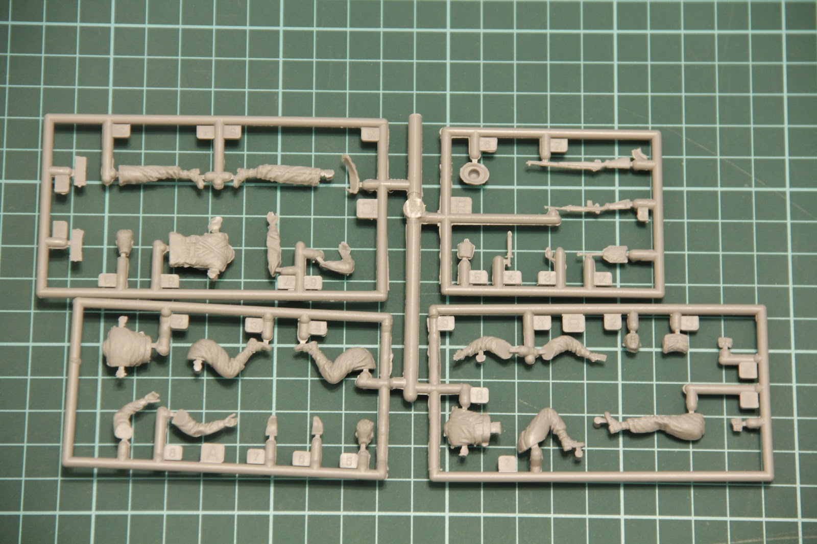 Фигурки размещены на отдельных небольших рамках, так что вы можете отделить нужную, и работать только с ней. Членение выполнено типичным для Miniart образом - отдельно отлитые руки, ноги, туловище и голова. Я рекомендую вам просмотреть видео-обзор, чтобы увидеть всё поближе.