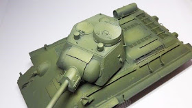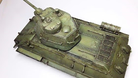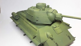 Tank with such paintjob was drybryshed with lightened shade of the base green (in proportion appr. 1:1:1).