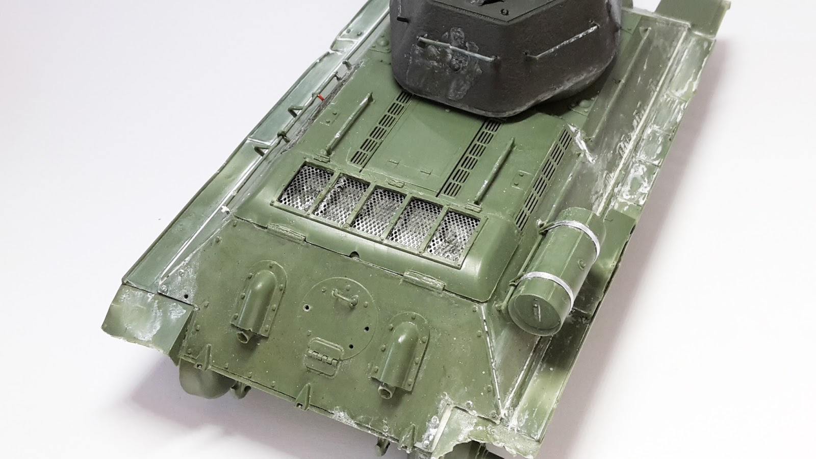 Síťovinu jsem vyměnil za leptanou náhradu od firmy Eduard ze setu pro T-34/76 firmy Tamiya.