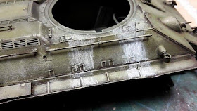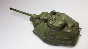 Takto připravený tank jsem drybrushoval silně zesvětleným odstínem podkladu (poměr cca. 1:1:1).