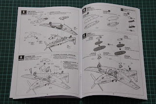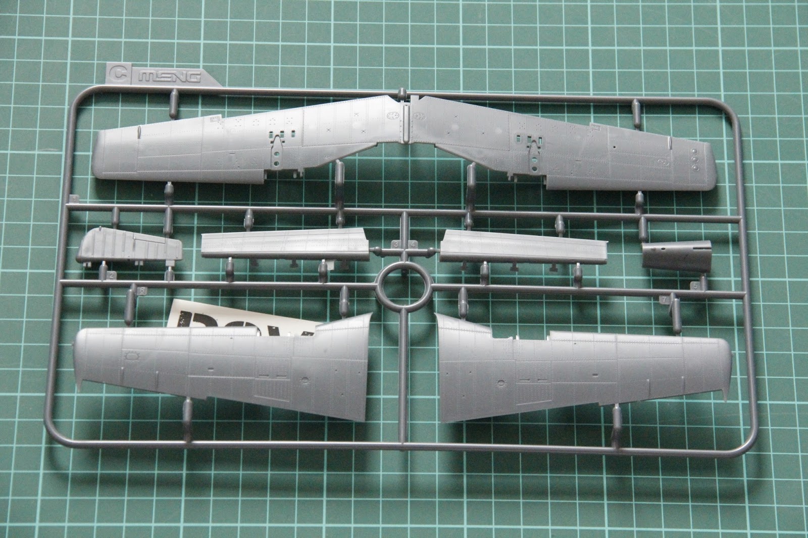 Детали крыльев отлиты на отдельном литнике. Членение типично, так что имеется две верхних половины и одна нижняя. Закрылки отлиты отдельно. Внутри имеются направляющие для простой сборки без клея.