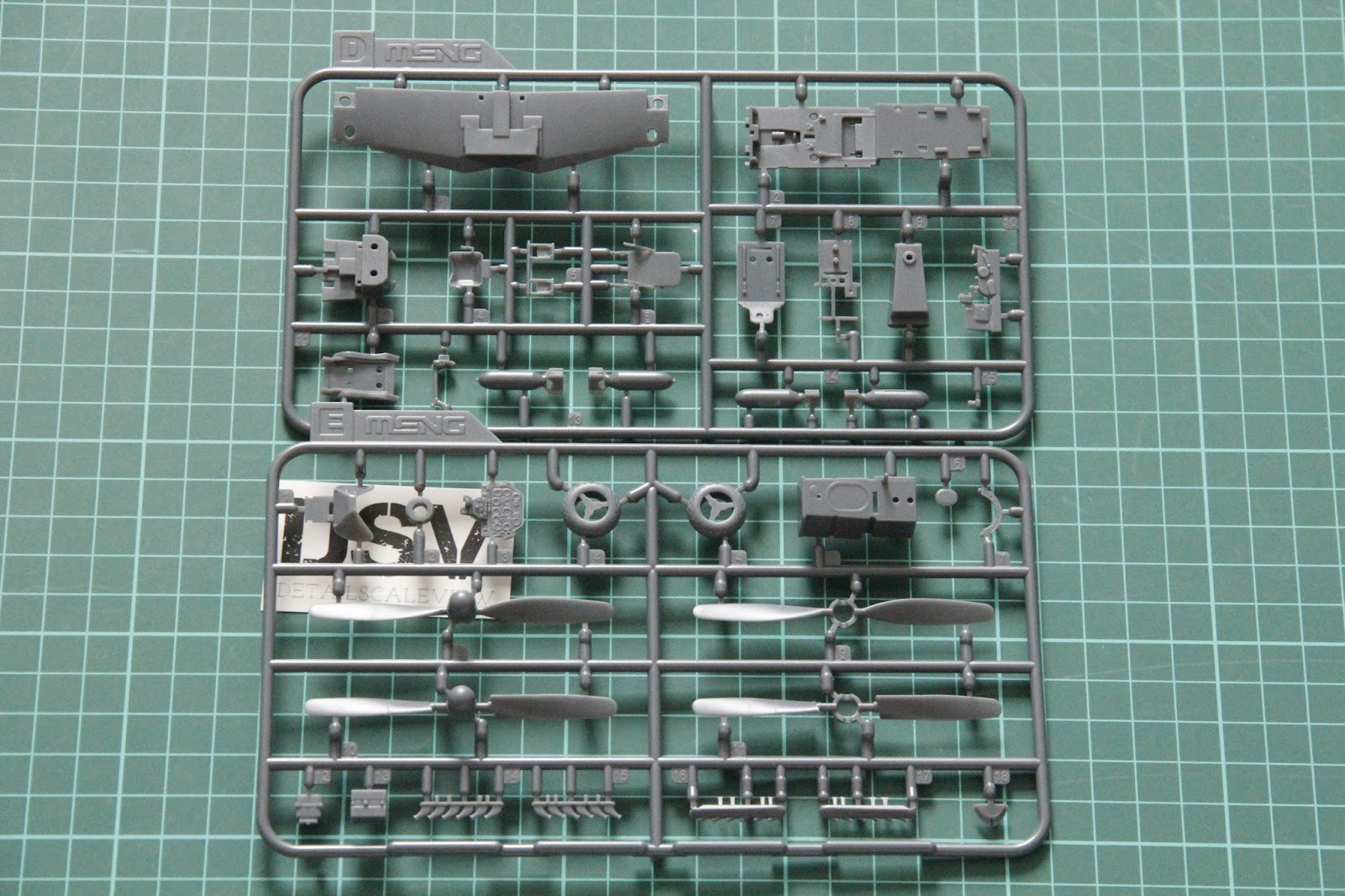 На первом литнике вы можете видеть основное преимущество дизайна - все детали отлиты в виде реальных панелей, так что вам не придётся возиться со швами. Обратите внимание, что набор предлагает как открытые, так и закрытые ниши шасси.