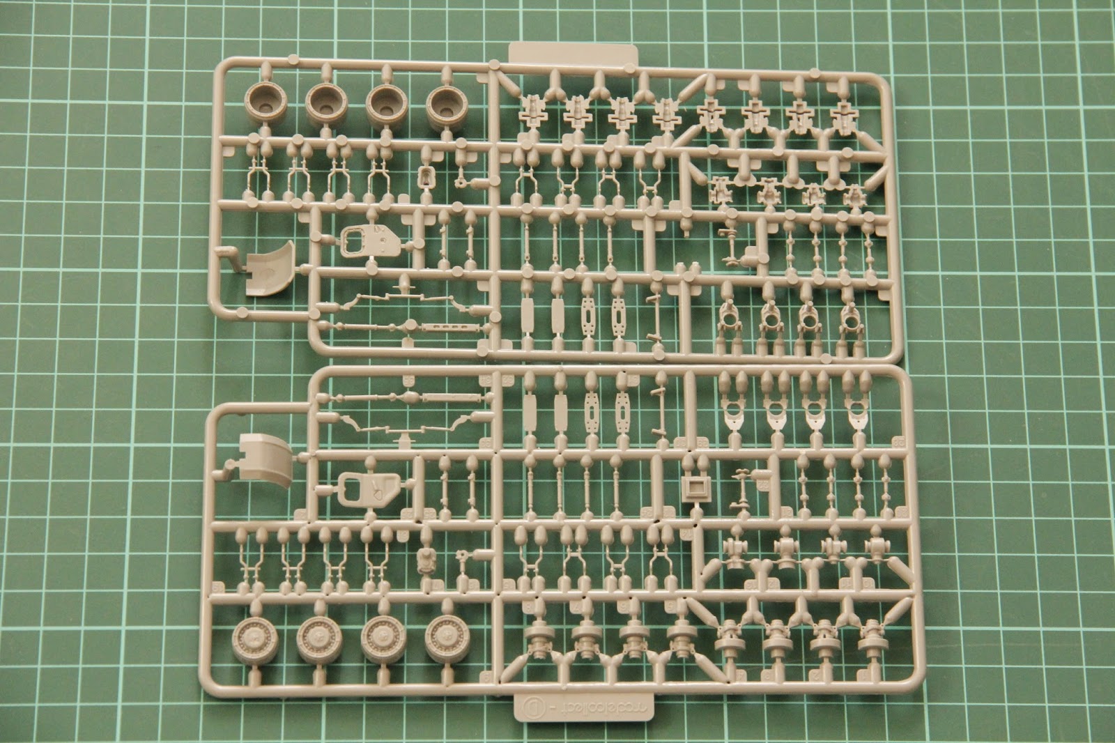 Ещё больше деталей подвески отлито на следующих двух литниках. Здесь моделист может видеть колёсные диски, отдельные двери и некоторые детали подвески.