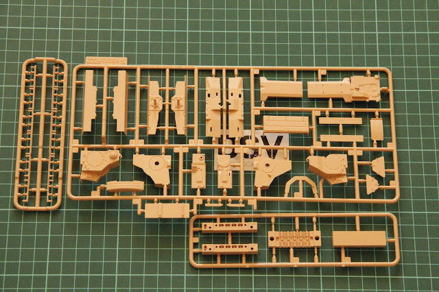 Боковые юбки отлиты в виде отдельных цельных деталей, так что не нужно будет тратить время на отдельные сегменты. Прозрачная рамка выполнена в отличном качестве и содержит все необходимые детали для перископов и фар.