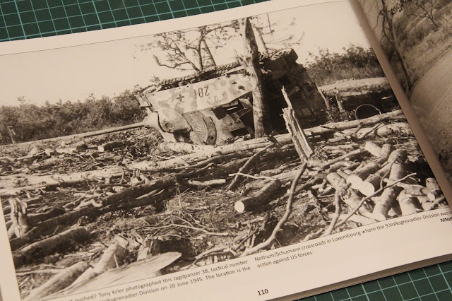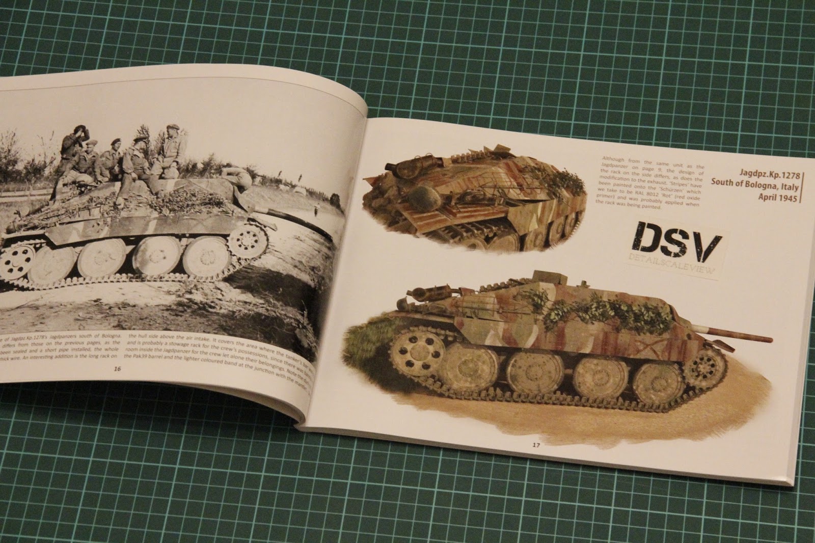 Я бы назвал данную книгу альбомом, который полон чёрно-белых фотографий и цветных иллюстраций. На фото выше вы можете видеть, почему цветные профили даны в книге - чтобы читатель понимал, какие цвета использовались в камуфляжах. Ниже вы можете видеть отличное фото для диорамы с Jagdpanzer 38.