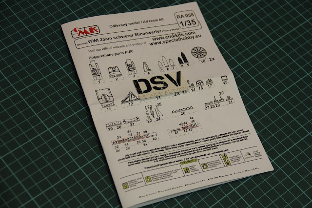 Today's kit is slightly different from all those tanks and aircrafts. This time we have a chance to check new resin set from CMK, which is molded in 1/35 scale and copies German Schwerer Minenwerfer. In other words it is a heavy mortar, which was used during WW1. As you can guess, such model might come handy for diorama or maybe even standalone subject. Manufacturer claims that masters were made with 3D printer, what makes model even more precise. All parts are packed into simple cardboard box with yellow label. Inside you will find them separated into separate bag sections. Let's open this package, and check everything closer.