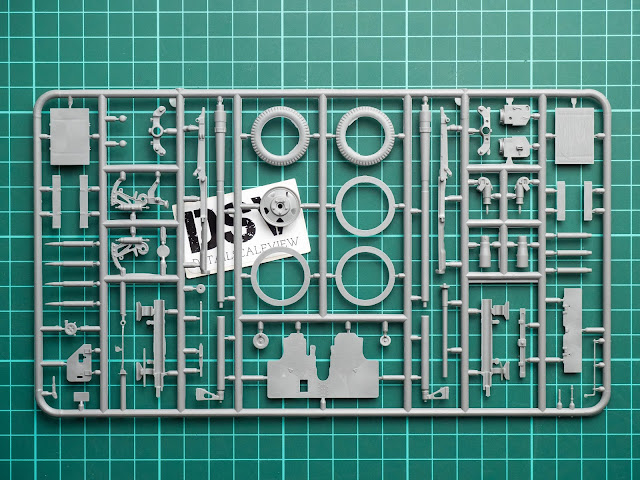 It is nice to see plastic wheels on the next frame. Armor shield comes as one-piece part, and there are also separate ammo rounds.