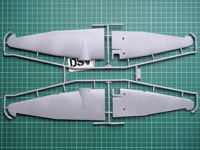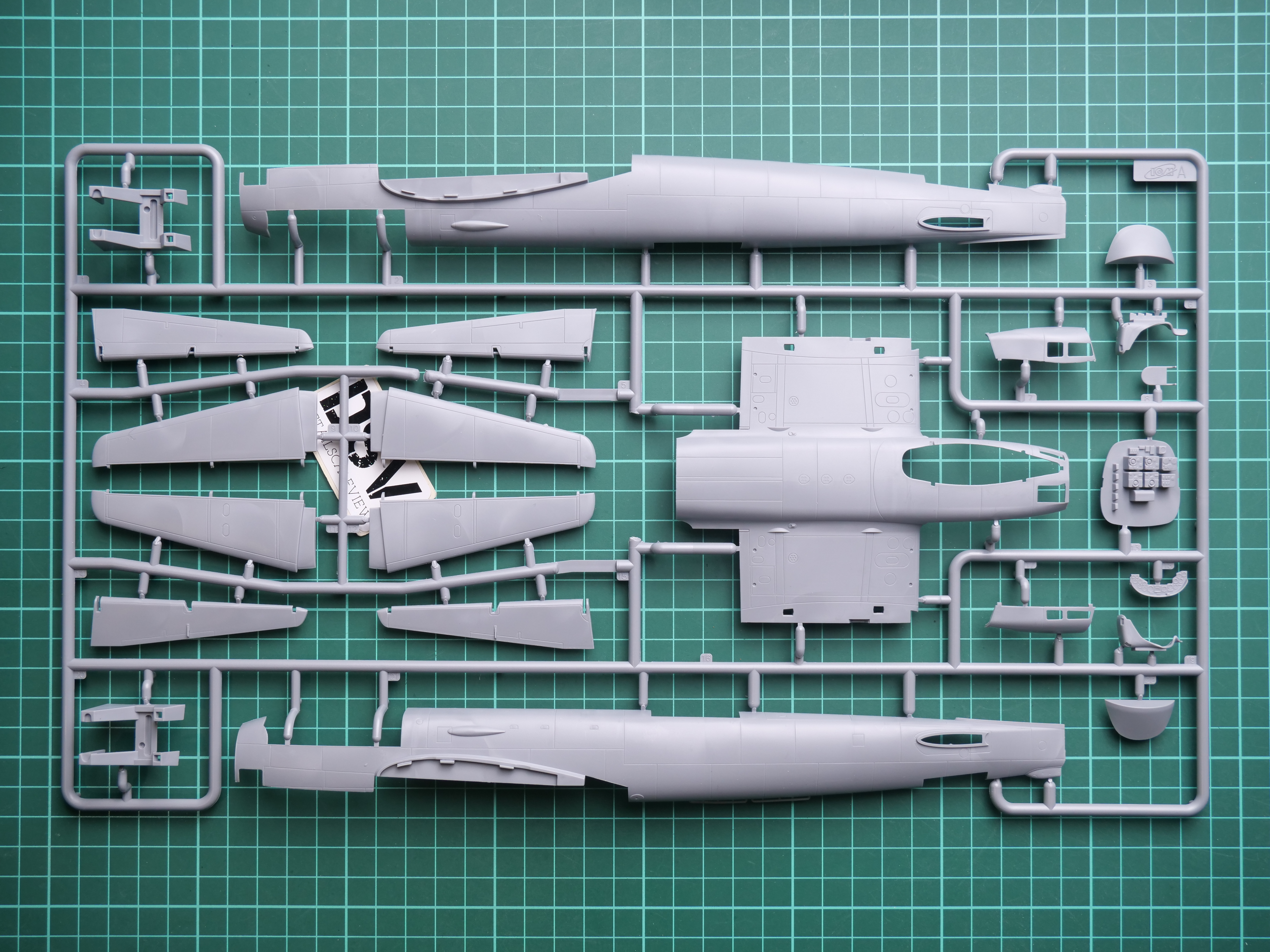 Both fuselage halves are molded without tail fairings. External features include recessed panel lines. Be careful with antennas premolded on one of the halves.